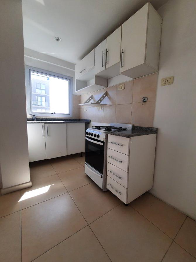 COCINA SEMI INTEGRADA AL AMBIENTE CON MUEBLES BAJO MESADA Y ALACENA. COCINA A GAS.